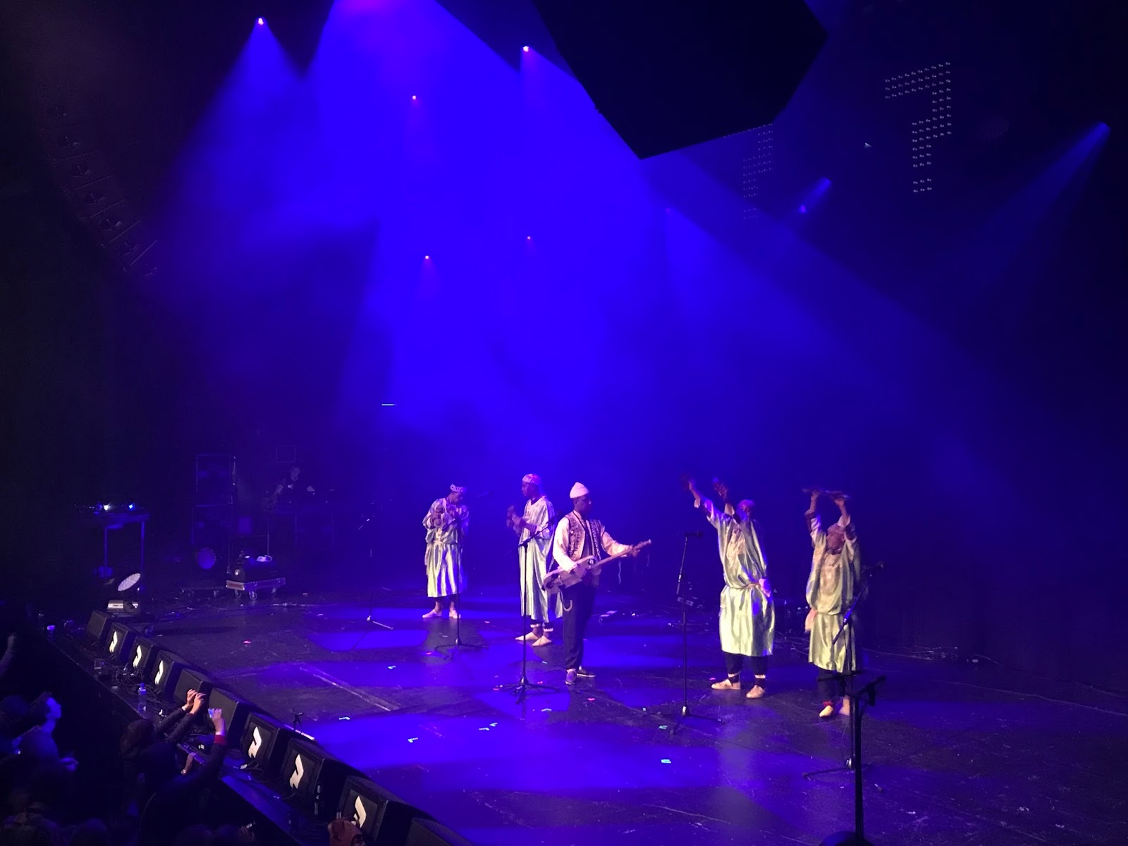 Me encontraba un poco más recuperado: aparte del cansancio de los dos festivales, se me había caído un tío encima durante un concierto de Sick of it at all al que había asistido el miércoles anterior al festival y tenía la espalda dolorida. La jornada empezó otra vez en una iglesia, como el día anterior, esta vez para ver a Farida & the Iraqi Maqam Ensemble. Antes del comienzo nos contaron qué es un maqam y las cinco reglas o etapas que debe tener. No vemos cosas así por España y es de agradecer poder asistir a propuestas que nos abren un poco más la mente. Inmejorable comienzo. Vuelta al Tívoli para ver a Maâlem Houssam Guinia and Band que salió con cuatro percusionista que además hacían coros y bailaban, rollo árabe. Figura clave de la música gnawa, sigue los pasos de