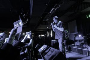 Vient ensuite le tour de The Invincible Spirit, légende allemande de l’EBM, qui a dû se confronter à un public à fond. Le groupe, composé aujourd’hui de Thomas Lüdke et de son épouse Anja Vorel, s’est trouvé face à un public qui connaissait tous les morceaux par cœur et qui, en plus, avait grandi sur leur musique. Le couple commence sur la puissante « A Nation », présentée comme une chanson d’amour. De suite commencent à s’enchaîner les classiques, comme « Contact » (1988), le premier morceau qu’il a sorti comme Invisible Limits, « Love is a Kind of Mystery » et le classique « Devil Dance » (1989), sur lequel les gens n’ont pas cessé de danser. L’un des grands moments du concert a sans aucun doute eu lieu lors de leur reprise de « Atmosphere », de Joy Division, pendant laquelle un membre du public monte sur scène, sans que Thomas s’en préoccupe. On a eu droit à un petit souvenir de son projet du début des années 90, The Mao Tse Tung Experience, duquel le duo joue « Irregular Times », premier morceau de Revolver, pendant que Thomas bataillait contre des câbles qui pendaient du plafond. Il continue ensuite sur l’un des apéritifs de son prochain disque, « Coming Home » avant de reprendre les classiques avec « Showdown » (1994), chantée par tous. La dernière ligne droite est composée de « Provoke You », du classique Current News, « I Hate You », et du mythique « Push! », où le public est devenu fou. C’était la première fois que j’assistais à un concert à Valence, et j’ai été surpris de voir un public aussi engagé. Thomas diminue un peu l’intensité avant de s’en aller sur « Anyway », et d’aller prendre des photos avec des fans.